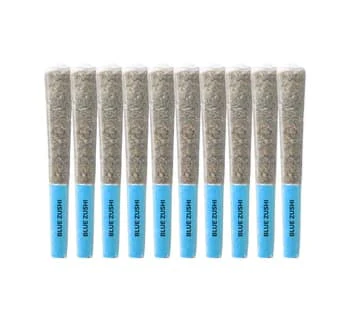 Blue Zushi 10x0.5g pre-rolls are packed with expertly milled whole flower and hand-finished with a Dutch crown. This Zkittlez and Kush Mintz cross delivers bold gassy aromatics with sweet tropical undertones, offering a smooth, full-bodied smoking experience in a convenient multi-pack.