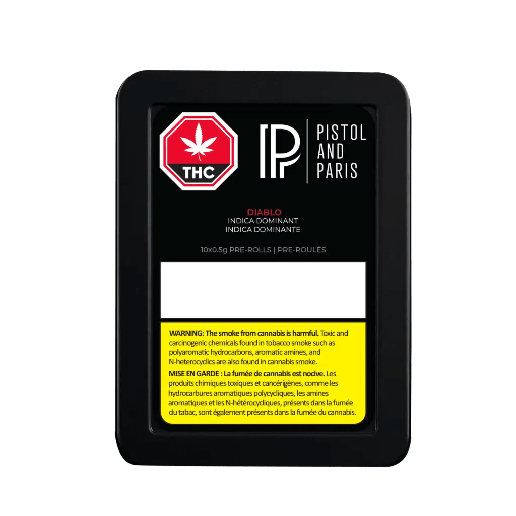 This 10x0.5g Diablo pre-roll pack offers ten expertly milled whole flower joints, hand-finished with a Dutch crown, delivering peppery diesel aromas and spicy, gassy flavours.